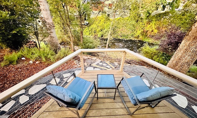 Enjoy a fully equipped kitchen, W/D, smart TV, high speed WIFI, a spacious primary bedroom and bathroom, & a private creekside patio. A rollaway twin bed is also provided. This charming & contemporary cottage is fully equipped to meet your daily needs and makes the perfect Silverton retreat.
