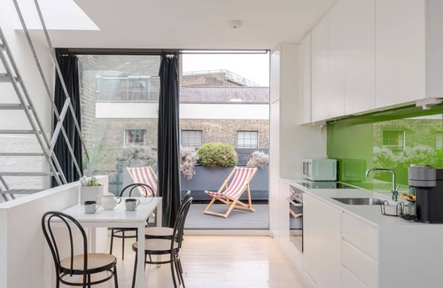 * Large terrace with incredible views of the Shard and overlooking the world famous Borough Market. "Lights on at night is our favourite".