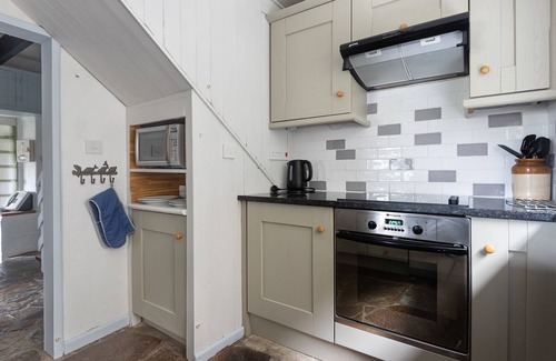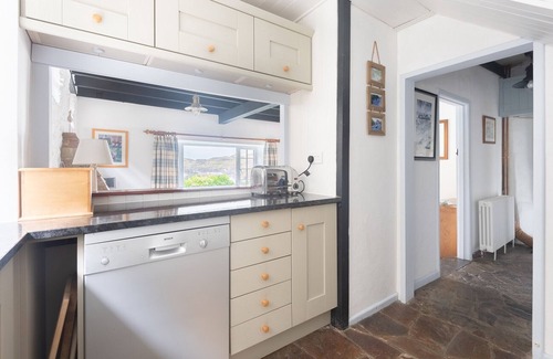 Experience - The Area...A traditional character cottage with uninterrupted harbour views at the seaward end of an attractive row of three, set on rising ground overlooking the Valency river as it tumbles into the picturesque National Trust harbour about 400 yards away. Boscastle harbour is a 2 minute walk as is the main village with its shops and famous 17th century Cobweb Inn. Set in a designated area of outstanding natural beauty with splendid walks through Valency Valley, the coastal footpath is close at hand and the beaches of Trebarwith Strand and Crackington Haven are about 5 miles respectively. Tintagel with its King Arthur legends is 3 miles and the picturesque fishing village of Port Isaac is a 30 minute drive and home to Doc Martin and the Fisherman's Friends.Stay - The Accommodation...The cottage is approached by a flight of 20 railed steps that lead up from the private parking area below to a small lawn which fronts the cottage and a stable door which opens first to an entrance porch with an inner glazed door leading to a slate flagged hallway. At the end of the hall there is an attractive stone floored, modern fitted kitchen with a large picture window to one side and a view over the harbour on the other. A step leads down from the hall into a beamed sitting/dining room which has a feature stone-built fireplace and a wide panoramic window which overlooks the garden and harbour below. A carpeted staircase leads up to the first floor landing and to one side, a bathroom W.C. with low beams, hand basin and shower over the L shaped bath. Also off the landing are two pretty cottage-style bedrooms, the master bedroom has a kingsize bed with a beamed ceiling and fine views of the harbour and the cliffs beyond, the other smaller beamed bedroom has a double bed and a little low window facing the river. Outside, a low walled garden has two small lawns, flower beds and a large terrace which has wooden garden furniture, perfect for al fresco dining but young children will require supervision. Don't forget...- Towels are not available- Sorry, this property does not accept pets