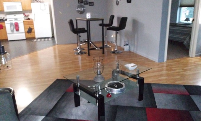 Take a step back into the retro 60s at "The Shop". Decorated with car parts, etc. from the 60s..focusing on '69 Camaro. Enjoy a view of The Des Moines river from the balcony & kitchen window. King size bed & full size bed will sleep 4. Full kitchen, living room, pub height dining area.. shower/tub combo in the bathroom & washer/dryer. Private entrance (there are 17 steps), key pad entry and off street parking for 2 vehicles, shed area for bicycles. Perfect place for a short term & get away stay.