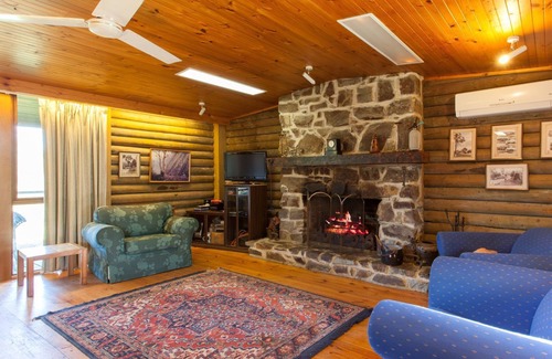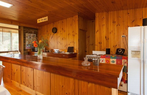 The Sixth Hole is a classic, rustic one bedroom, log cabin with a large open plan kitchen/living area featuring a large stone fireplace. It's a great place for cozy evenings in front of the roaring fire. The bedroom features an antique brass and cast iron queen-sized bed. There is a sofa in the lounge that can be used as a double bed. This cottage also has reverse cycle heating and cooling and full kitchen facilities.