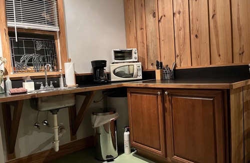 The Sleepy Shack is private, comfortable, and clean! The studio apartment is ideal for two tenants. Three can easily fit in this 500 square foot cabin if one person doesn't mind the sleeping on the couch.