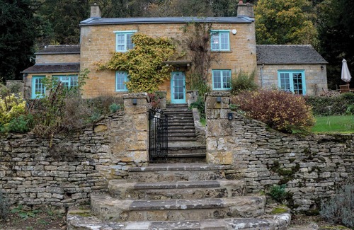 The Snicket consists of a kitchen/diner with dining seating for eight, range electric oven, electric hob, dishwasher, fridge/freezer, microwave, kettle, toaster, utility room with a washing machine and tumble dryer, sitting room with woodburning stove, snug with woodburning stove, Smart TV, and selection of books and games, and a cloakroom. The bedrooms consist of a super-king-size with an en-suite, an emperor (zip/link, can be twin on request), and two twins, serviced by a bathroom. WiFi note: possible weak phone signal due to the rural location, fuel, power, bed linen, and towels are included. Outside, there is a non-enclosed multi-level front garden with a patio, lawn, furniture, an enclosed rear garden, and off-road parking for six cars. Sorry, no pets and no smoking. Shop 2.3 miles, pub 2.2 miles. The Snicket is your idyllic Cotswolds getaway. Note: There is a small stream running through the garden. Note: There are steps in the garden from the patio and lawned area. Note: Weak phone signal due to the rural location.