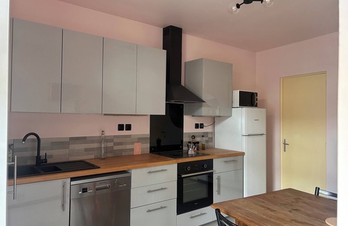 Prepare a home-cooked meal in the kitchen, complete with an oven, a stovetop, and a refrigerator, as well as a coffee maker, an electric kettle, and a microwave. Connect to the free WiFi, or get cozy in front of the TV. Bathroom amenities include a hair dryer, towels, and toilet paper. And you won't have to pack extra clothes, because you'll also have access to laundry facilities. Other amenities at this 2-bedroom, 1-bathroom rental include bed sheets, a desk, an ironing board, and heating.