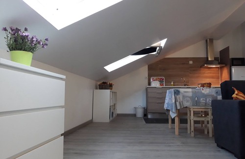The Attic of Mé-Mé has capacity for 4 people. It has a fully equipped kitchenette, living room and 1 bathroom (with hydromassage column). Close to supermarket, restaurants, bakery, pharmacy, health center and municipal swimming pool.