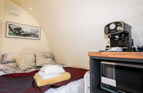 The living area for this pod has a studio layout with double bed and kitchen with electric combi microwave/oven, fridge, coffee maker, kettle and toaster. There is a shower room with walk-in shower, basin and WC. Outside there is a non-enclosed garden with patio with furniture and undercover barbecue space. Within 0.3 miles you will find a shop and within 1.6 miles a pub, and please note this is a smoke-free property. Fuel, power, bed linen, towels and WiFi included in the rent. Enjoy a romantic escape to Sussex with a stay at The South Lodge Retreat.