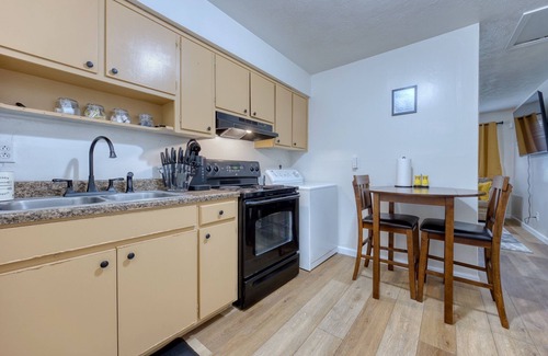 Discover this amazing 2-bedroom gem in Columbus. This welcoming apartment features 2 queen beds, a cozy living space, and a fully equipped kitchen. Enjoy the convenience of a washing machine, dryer, AC, and high speed WiFi during your stay. The bathroom comes with a hairdryer and a relaxing bathtub. Our place will help you feel at home while you're traveling in Columbus.