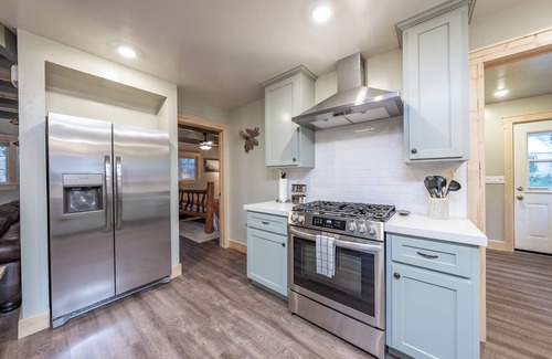 Spanning 1,518 square feet, this delightful cabin features three beautifully appointed bedrooms, making it ideal for both couples and guests. The classic French country decor exudes warmth and charm, while the fully equipped kitchen invites you to prepare a delicious meal together. When it's time to unwind, curl up next to the fireplace or enjoy movies on the flat-screen TVs with Blu-ray players. Take advantage of the large deck, which is perfect for al fresco dining, or indulge in a barbecue at the covered outdoor area. Additionally, thoughtful amenities like complimentary coffee and hot cocoa, linens, towels, and toiletries ensure that every detail is taken care of during your stay.