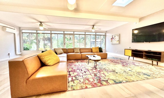 Welcome to The Sputnik Sleeps 20 Pool 10 minutes to Beaches Family-Friendly, a stylish Mid Century Modern escape perfect for couples looking to celebrate their special day. With the capacity to comfortably accommodate up to 20 guests, this property transforms into a picturesque wedding venue where you can create unforgettable memories with loved ones. Its stunning open-concept living spaces and serene outdoor settings offer ample opportunities for both intimate ceremonies and lively receptions.