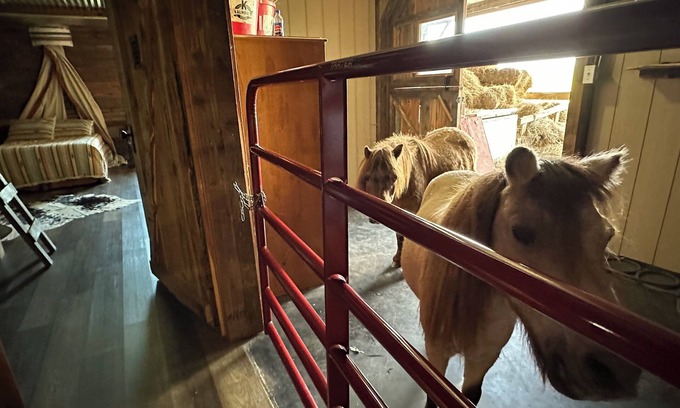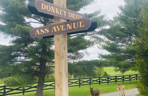 Escape to this marvelous barndominium in picturesque southern Indiana. With 3 bedrooms, 3 baths including 2 king beds, 1 queen, 1 full plus 3 sets of bunk beds. this cozy rustic-modern retreat is perfect for families or groups of friends and family. Enjoy being on a farm yet having all modern amenities - full gourmet kitchen and modern bathrooms. Staying at Donkeytown also gives you an intimate setting with mini donkeys, goats, sheep, ponies and beautiful 40 acres to explore with hiking, picnics, and fishing in our two fully-stocked ponds.