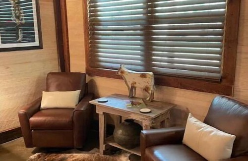 The Western B unit is connected to our Western A unit and are under the same roof. These rooms can be booked separately or together. They are connected by doors that can be locked or opened to make a two bedroom two bath unit. The Western A room has a kitchenette with a washer and dryer. If wanting to book together please check availability on both rooms. They are listed separately. The Stables also offers a 2 bedroom 2 bathroom English Cottage with a full kitchen, washer/dryer combo and living room. The unit is not under the same roof as the Western units but is directly in front of them. The English Cottage is very close and is a separate listing. Check for availability.