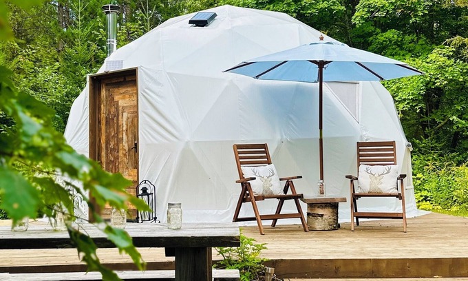 Escape to The Stargazer Geodome, a unique glamping getaway in the heart of the scenic Almaguin Highlands.