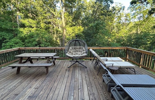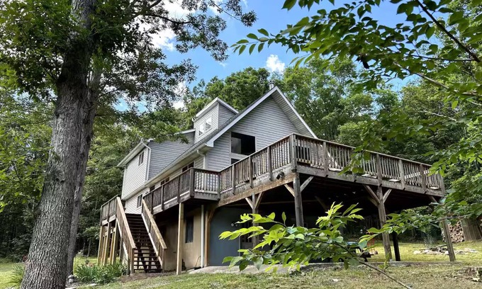 Serene chalet nestled in the WV mountains, on 5 acres with access to a 50 acre, private lake. Spectacular views of the night sky from a spacious, wraparound deck. Cozy up by the wood burning stove in the open space living room. With 4 bedrooms including a king, queen, and two full beds, plus a crib, this cozy retreat is perfect for families or groups. Pets welcome! AC, WiFi, TVs, streaming services, books, board games, lots of cookware, fully equipped kitchen, washing machine.