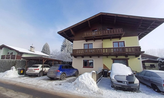 Plenty of space for you to relax!The four large bedrooms on three floors, two bathrooms, the well-equipped kitchen, the spacious living room and the private garden ensure that large groups or families can enjoy their holiday in the Alps in a very relaxed way.Ground floor: here you will find a fully equipped kitchen with a cooker, oven, dishwasher, large fridge freezer and a cosy living room. On this floor, you will also find a comfortable sofa and a large dining table for eight people. There is a bathroom with a washing machine, toilet and bathtub also located on the ground floor. First floor: here you will discover two spacious bedrooms with box spring double beds. One bedroom has a balcony with stunning panoramic alpine mountain views and is equipped with a TV. There is another bathroom with a shower and toilet on the first floor also.Second floor: two more spacious bedrooms with box spring double beds and storage space await you. In addition, one bedroom is connected to the panoramic balcony and also has a TV.Lodge at a glance:•Accommodates eight people•Dogs welcome (on request for an additional charge)•Comfortable double beds and bedrooms have plenty of storage space•Two bedrooms are equipped with Smart TVsDirectly in front of the building is a free private parking area for three cars. One parking space is covered. The lodge also has a small garden with an outdoor dining table. A washing machine is available free of charge for all your laundry needs. The lodge is located just a stone’s throw away from Lake Zell in a quiet yet central location. In the garden house there is a ski room, which can also be used as a storage room for bicycles.Extras:•Situated in a quiet area but still centrally located•Bread roll breakfast service from the local Katschner bakery with top-quality baked goods (for an additional charge)•Bus stop only 260 m away/shopping centre only 450 m awayLocation: This large house is located in Zell am See in the beautiful district of Schüttdorf and is surrounded by charming, detached houses. The bus stop is only 260 metres away and there are also several restaurants within walking distance (including a Chinese and an Italian restaurant – both of which are excellent!). If you like shopping, you can visit the nearby shopping centre (450 m) with a good mix of clothing retailers as well as a large supermarket. Walks and cycle paths begin right on the doorstep of the house and will take you into the unspoilt nature of Lake Zell.Zell am See is a paradise for holidaymakers from all over the world and every season offers countless leisure activities. Three lidos (Lake Zell has a water temperature of up to 23 °C in summer), one glacier snow guarantee, 1,387 kilometres of pistes, countless hiking trails, the most stunning views of the alpine mountains, 90 restaurants and is in the immediate vicinity of Kaprun.Miscellaneous:The house is located directly in the residential area. Therefore, please be sure to observe the mandatory night-time quiet hours (22:00 to 06:00). Parties are not permitted.Drop us a line right away, we’ll be happy to check if the lodge is available for the dates you are looking for and reserve it for you accordingly!