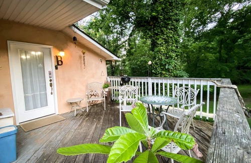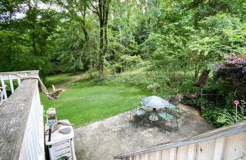 The Stone is a rustic, artistic, private, one-bedroom/one bath, ground level, fully furnished apartment/condo. This apartment has an extra bedroom with no private bathroom perfect for couples who snore, close family, or those who just want the extra space. This unit features a deck as part of its private entrance. It's crazy, weird, unusual, fun, and eclectic looking with great views. It has a full kitchen, spacious laundry area, and lots of eye candy, loaded with artwork and it even has a 1940's barber chair. And as in life, this is a work in progress. No cable, but has Roku TV setup with our pre-paid Netflix and Hulu live TV accounts.