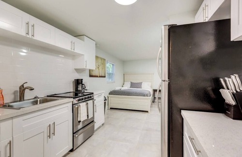 Brand new fully renovated and fully detached studio located in charming River Oaks neighborhood. This home is situated in the back of property and is completely private and fenced in. There is a queen size bed, TV, and fully operational kitchen. Other amenities include complimentary parking for two cars,WIFI, Netflix, Amazon Prime & Youtube TV. Just 3 miles to the airport, everglades cruise port, Las Olas, Downtown, & 4 miles to the beach. Min age 25. *NO SMOKING*