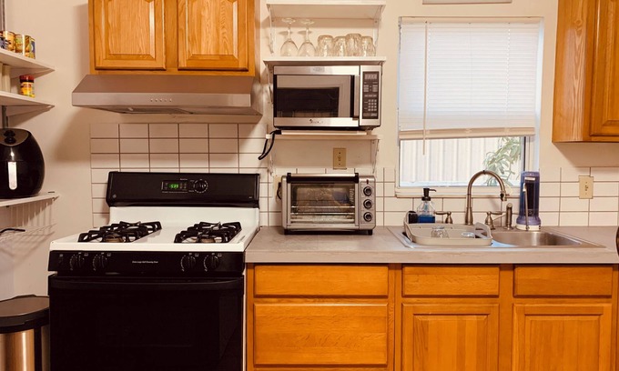Keep it simple at this peaceful and centrally-located studio !! You will have your own private entrance. The studio is connected to the main house, but you are guaranteed complete privacy . Enjoy the 1 bedroom, 1 bath with full kitchen. The bed is a king size bed and there is a twin floor mattress . The studio has its own washer and dryer. In addition, you can walk to all the nearby restaurants and heritage park on Mainstreet!