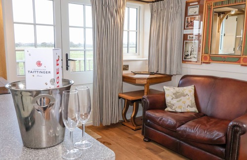 The living space of this Shepherd's hut consists of a studio-style kitchenette and sitting area with oven, hob, kettle, toaster, and Smart TV. There's also a king-size bed, along with a shower room. Outside there is a front patio with furniture, and secure on-site parking. Smoking is not permitted at this property. You'll find a shop in 2.5 miles and a pub in 2.6 miles. WiFi, fuel, power, bed linen and towels are all included in the price. Whisk your loved one away to the North Yorkshire countryside at The Studio. Note: There are steps up to the property.