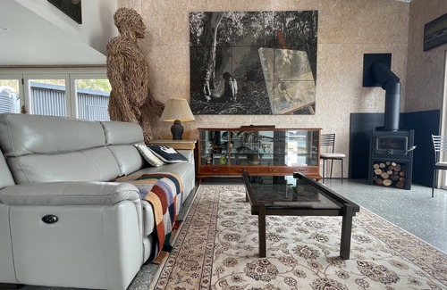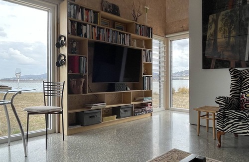 In an epic location at the end of a very private road is a fully self- contained art studio designed by renowned Tasmanian architects Circa Morris Nunn . Beautiful and wild, historic and sensitive to its surrounds The Studio is surrounded by Pittwater Estuary and the Coal River and when you enter the building you will be immersed in a world of art.