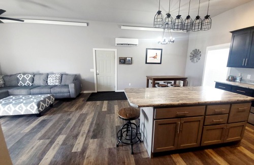 Come enjoy The Stumble Inn after a day on the river. We have a large kitchen that is open to the living room and fully stocked with all the utensils you will need! Large two stall garage to pull your vehicles or boats in, or just have another gathering place. We have three bedrooms. Bedroom one has a king bed with twin bunks beds, bedroom two has 2 full size beds, and the third has a queen bed. We supply all essentials such as towels, linens and toilet paper.