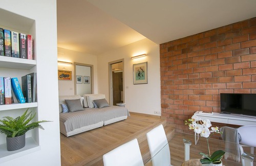 The apartment is in the quiet and exclusive area of Roccolo, in the town of Laveno Mombello on the eastern banks of Lake Maggiore, just a 20-minute walk from the lake shore, where guests can swim and sunbathe.