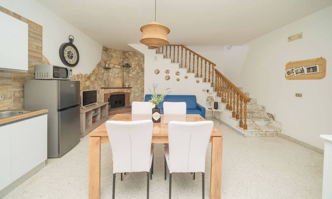 The house has an independent entrance and is spread over an area of about 85 square meters on two levels. On the ground floor living room with sofa bed, kitchenette, fireplace and bathroom. On the first floor, two bedrooms with double beds and a bathroom.