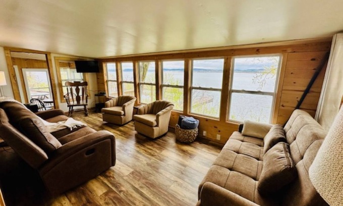The newly renovated Summer Breeze features windows for days in the living room to take in the river views! Plenty of seating for everyone, reclining couch and swivel chairs. Relax on the 4-season porch or on the private patio. Both bedrooms include a pillow top queen bed and a space to hang clothing and store your belongings. A Serta convertible sofa is located in the living area and creates an additional sleeping space for 2, sleep or nap with a view! The full kitchen has everything you need to whip up a quick lunch or heat up your leftovers. Since we are a beautiful bluff side location with lake views expect some traffic and train sounds. The Mississippi River Valley hosts many adventures! Visit The National Eagle Center, Lark Toys, wineries, thrifting/boutique shopping, all kinds of eateries, enjoy amazing fishing and all kinds of water activities! Highlights are kayak tours and art fairs! We are located 6-10 minutes from Lake City or Wabasha.