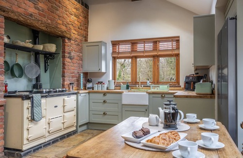 The kitchen is a dream come true for food lovers, featuring a full traditional Aga Range cooker, a large farmhouse sink, modern appliances and ample counter space for meal prep. Whether you're preparing a casual breakfast or hosting a festive dinner, this kitchen has everything you need. The adjoining dining room can comfortably seat your entire group, with a large custom built table that invites long meals and lively conversation.