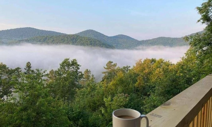 Unwind on the expansive deck & immerse yourself in breathtaking vistas that never cease to captivate, whether it's day or night - year round! Nestled atop a mountain teeming with nature & wildlife, this charming rustic chalet offers a serene escape. Mornings unveil the mesmerizing sight of fog cascading into the valley below. This top of the mountain retreat promises an unforgettable getaway, located near prime trout fishing spots, kayaking adventures on the TOCCOA river, and numerous hiking trails.