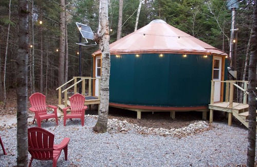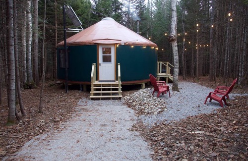 The Sunday Riveris named after, well you guessed it, the Sunday River!It is tucked in a stand of evergreens and maples within a 128 acre parcel. Chandler Brook runs through the majority of the lot and meanders through a large marshland.The yurt has locking front and side doors. Use the keycode emailed before check-in to enter the front door.