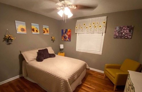 The Sunflower House is nestled in a quite, and diverse neighborhood in Greenwood, MS. Decorated with local artwork and photos, this cozy 2bd/1ba boasts a Sunflower theme, seeing as the area was once covered in Sunflower fields. Very Budget and pet friendly property! GWood is a fun lil town, flourishing with shopping, food, and history. Enjoy walking along the bricked streets of downtown and seeing the riverfront mansions that are 100+ Years old! After a day on the town your cozy cottage awaits.