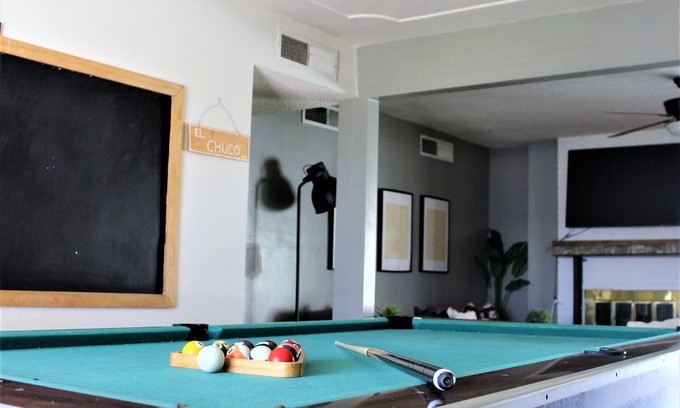The Sunset Casa Chuco es el lugar ideal para disfrutar de El Paso y crear momentos inolvidables con familia o amigos. Esta casa de 4 habitaciones cuenta con amenidades divertidas justo dentro del alojamiento, como mesa de billar, juegos de mesa y una alberca perfecta para relajarse. Está ubicada a solo 15 minutos del centro de El Paso, a 5 minutos de las montañas Franklin, Fort Bliss y muchas atracciones más.