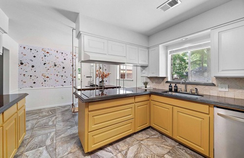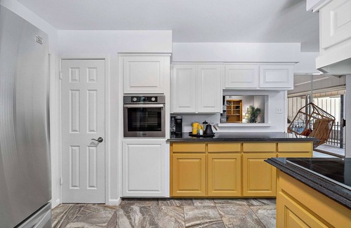 We offer our guests Netflix, wifi, smart TV, and a top tiered kitchen. Oh yeah, don't forget about the fun kitchen & bar swings.