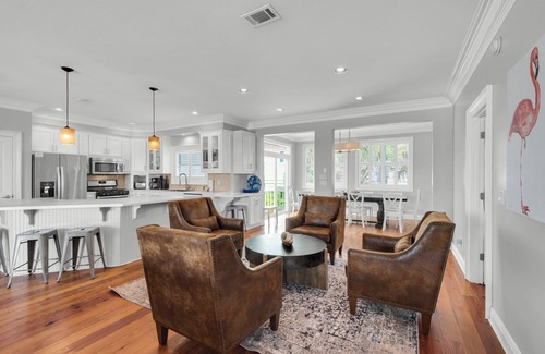 The Perfect Beach House with Pool, located near the stunning shores of Santa Rosa Island in Pensacola Beach, is an ideal choice for accommodating your wedding party. With spacious rooms and vibrant coastal décor, this property sets the perfect backdrop for celebrating love.
