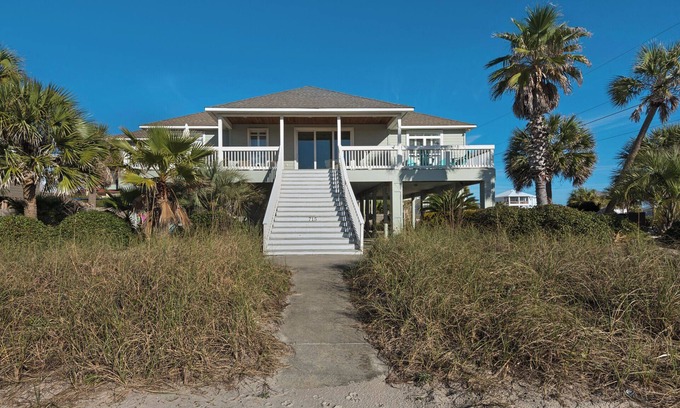 Located on the stunning Santa Rosa Island in Pensacola Beach, Florida, this beach house places you just moments away from pristine sandy shores, vibrant shops, and delectable dining options. Your guests can indulge in everything the area has to offer, from water sports to local attractions, all within a short distance from your home base. Planning your wedding here means not only securing a breathtaking venue but also providing your attendees with endless opportunities for enjoyment in a picturesque beach setting.