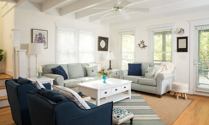 Enjoy your morning coffee on the porch, ride to the market for coffee, and spend your days at the beach.