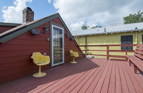 - Queen loft with opening to large rooftop deck, overlooking our bamboo filled back yard on one side and French Doors with a view of the parade route during Carnival time. Cast your eyes further from both the deck and French doors to the city skyline. Perfect for enjoying cocktails, listening to the music at Tipitina’s and the people milling about on the sidewalk below.