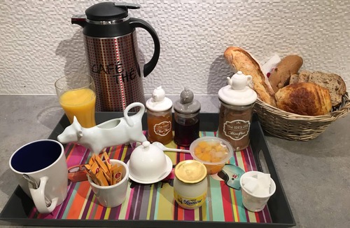 Breakfast (6 € per person) is available on request (coffee, tea, orange juice, yoghurt, butter, jam, various breads). A coffee maker, kettle, fridge, oven and electric hob make you independent.