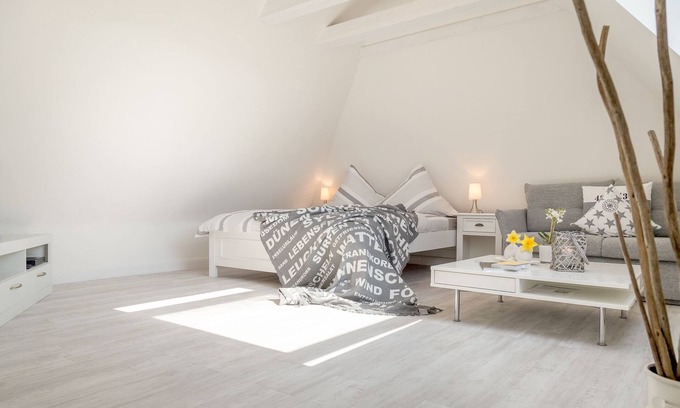 In the middle of the roof is the apartment Tessa with its light-flooded living and sleeping area, which invites you to relax. There was no saving on beautiful color accents and pretty accessories, which provide a lot of holiday ambience.