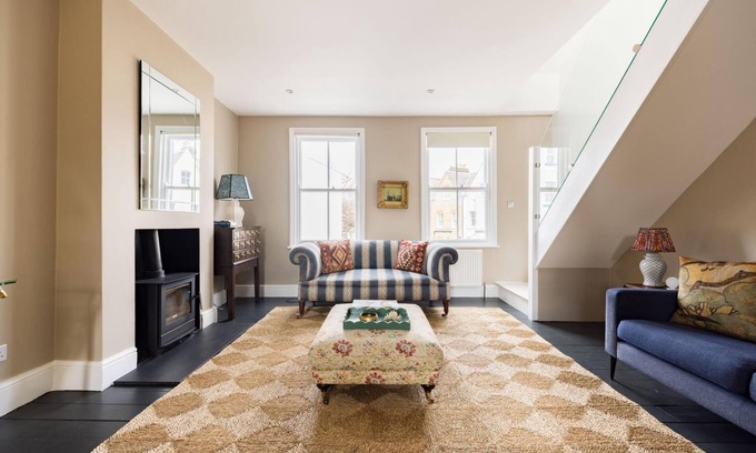 This delightful home is perfect for families or groups of friends. It blends comfort with style and is spread over three floors so you won’t feel crowded. There’s a private garden to enjoy when the weather is fine, and the main bedroom opens onto a balcony – it’s a wonderful spot for your morning cuppa. You’ll be in the heart of Battersea, close to Battersea Park and the Power Station, with tube stations nearby for exploring more of London.