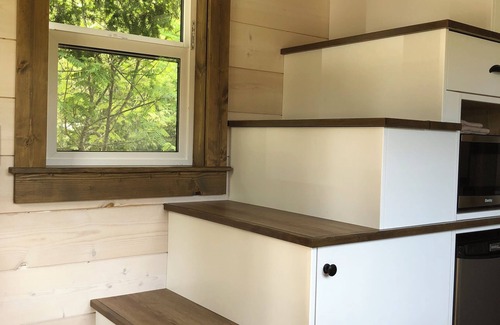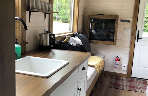 Come experience all this beautiful custom built, 4 season tiny home has to offer! With modern appliances, microwave, toaster oven, coffee maker, kettle, and a washer/dryer combo, full bathroom with shower this house has everything you'll need for a fabulous stay.