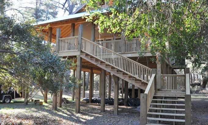 Based on the information received from our partner, the Sapelo Island house has not specified they are wheelchair accessible. Likewise, there is not an elevator specified as being available at the property. Specific accessibility details may be addressed in the property details section of this page.