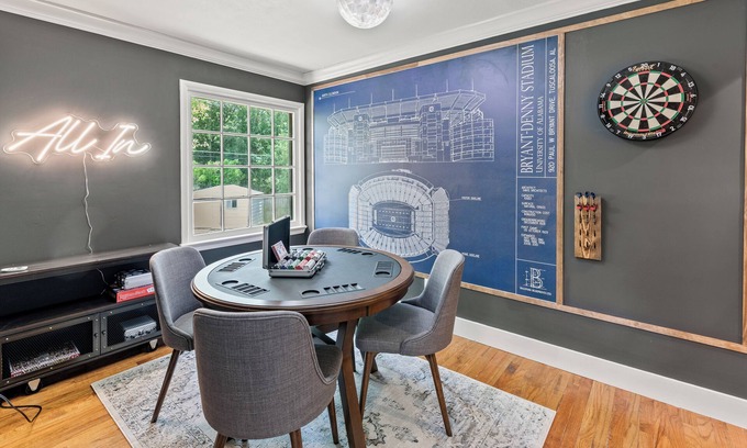 The Tide House is a newly updated 3 bedroom / 2 bath home conveniently located in midtown and close to the university, restaurants, shopping, and leisure activities. Whether spending the day exploring Tuscaloosa or relaxing at home, it's perfect for spending time with friends and family. Enjoy an evening by the fire pit, an afternoon cookout, or a game of poker in the game room. The Tide House is sure to create lasting memories during your stay.