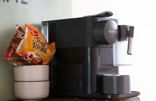 Enjoy the stocked coffee station with teas, coffee, cereals and cookies.