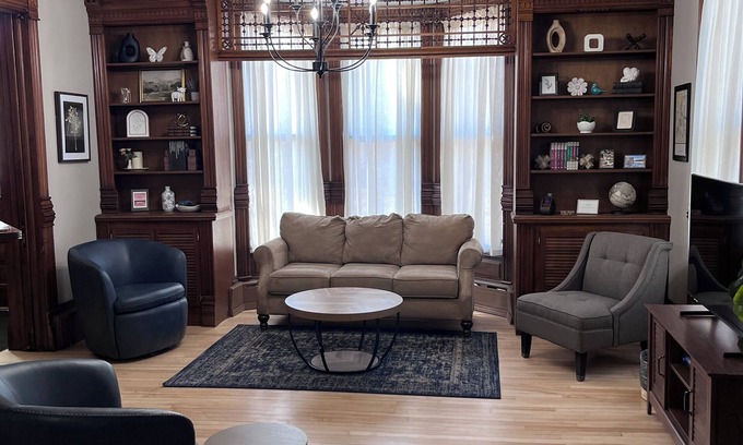 The tower on Summit is a spacious apartment located downtown Eau Claire. Walking distance to downtown shops, restaurants and bars. The apartment has 3 bedrooms and an office space with a Murphy bed, 2 full bathrooms and 2 full kitchens. Perfect space for friends and family to gather, relax and enjoy Eau Claire.