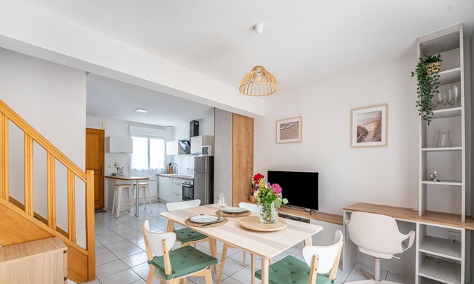 We propose to you to the hiring, on the commune of Beaurains, this charming air-conditioned house of a surface of 53 m ² and being able to accomodate to 4 travellers. It is composed of a nice living room with a fully equipped kitchen and dining room, a small living room that can be used as a bedroom, a nice bedroom, a shower room and a terrace. Wifi (fibre optic), sheets and towels included, we are waiting for you!