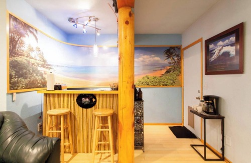 Bask in the canopy of a temperate rain forest, enjoy the forest views and This 1100 square foot 1 BR suite tucked into a forested hillside, is the lower level (1st floor) of The Tree House, a rustic contemporary home-on-stilts that backs up to the Wildwood Open Space and climbs into the canopy of the surrounding Big Leaf Maple and dogwood forest. The unit and it's many amenities -- spa, deck, BBQ, putting green, game room with pool & ping pong tables, dedicated home theater room, gas fireplace & Tiki Bar -- are for your exclusive use only. That being said, you will likely have other guests staying above you in The TreeHouse Canopy so thoughtfulness and consideration are required and quiet hours are strictly observed from 10 PM (11 on weekends) to 8:00 AM.