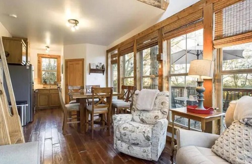 A one-of-a-kind, rustic treehouse surrounded by water, beautiful scenic views, nestled in nature. Come for a solo retreat, a romantic couples getaway, or family vacation. Read a book on the outdoor swinging bed, fire up the grill in the outdoor kitchen, hammock, fish off the pier, paddle boat, warm up by a campfire & make lifelong memories. Cozy master bedroom, loft for 5, full kitchen & bath, wifi, private climate control in each room. Only 2 miles from restaurants, parks, shopping, and more.