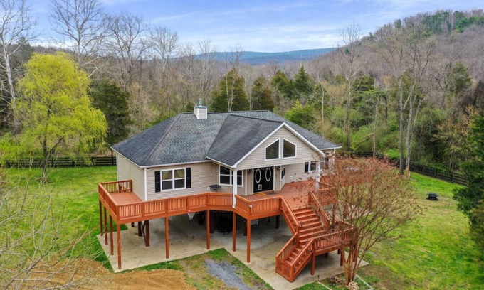 Escape to a serene treehouse oasis nestled in the heart of the Shenandoah Valley. This property offers a unique blend of rustic charm with modern comfort. The property boasts a fenced-in yard. Spend your days lounging by the tranquil pond, or in the nearby rivers a perfect spot for an afternoon of fishing or simply basking in the sun with a good book. Spend your evening relaxing in the hot tub. This home is a sanctuary where memories are made, and the beauty of nature is just a glance away