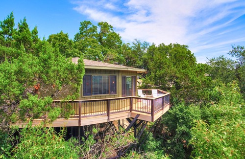 Enjoy this peaceful lake view on the south shore of Lake Travis. The "Treehouse of Lake Travis" was newly renovated in 2017 and offers 1st class amenities giving you a wonderful living space to gather around its beautiful kitchen peninsula, dine, or enjoy a cozy fireplace. Tiled Bathrooms are Spa-like and Bedrooms are well appointed with the finest linens. Such comfort will make you not want to leave. If you do, there is a swimming pool, hot tub, BBQ area and the Marina is steps away. Whatever you do you will have the opportunity to relax in this beautiful Hill Country and Lake setting.